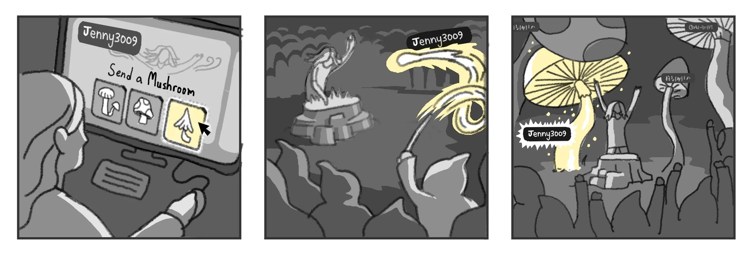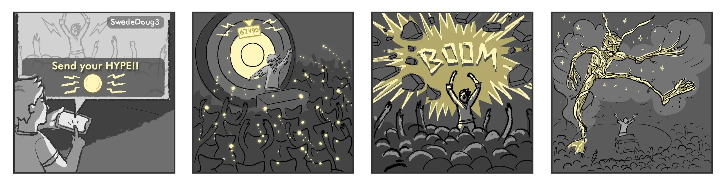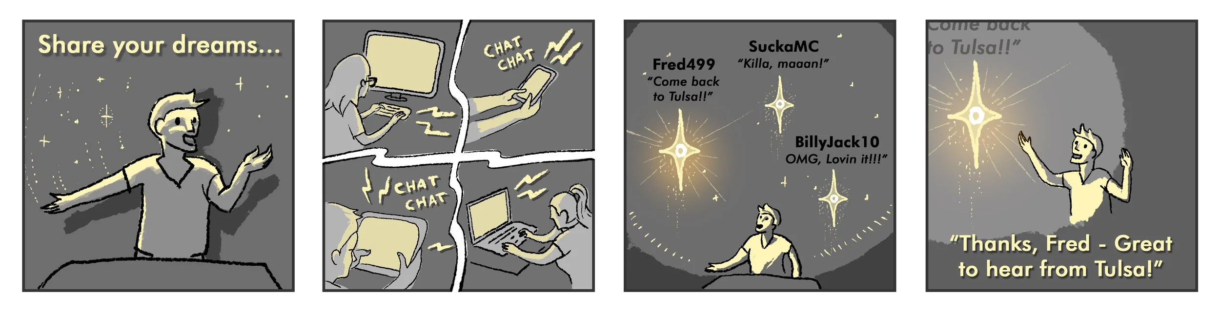 To make it easier for performers to understand how to use these entirely new types of interactions to connect with their audience, I developed these simple, accessible storyboard comics for each mode.