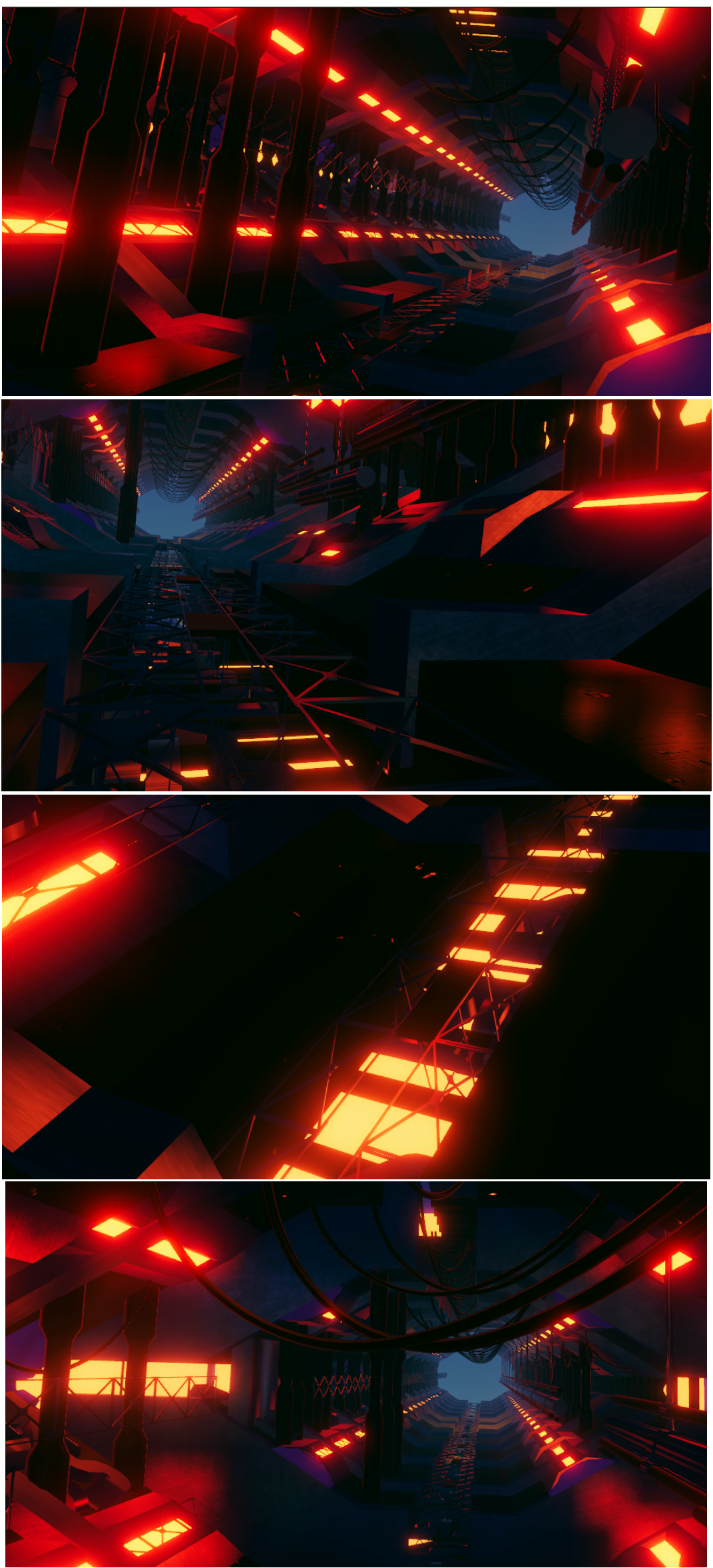Here are some shots I took of the VR-ready tunnel interior. Despite being VR-performant, it feels huge and complex due to careful parallax layering and use of an alpha scaffolding asset I made to give it scale and detail.